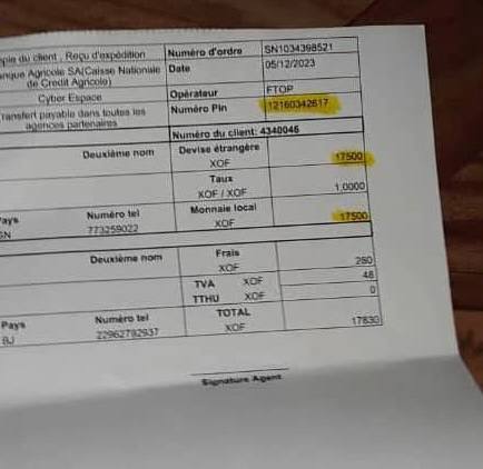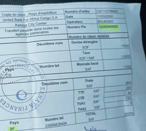 N.B: 30€ = 35$ = 17500 XAF